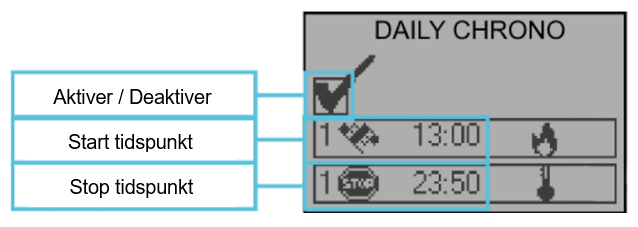Med denne funktion kan du indstille en daglig tidsplan, hvor pilleovnen tændes og slukkes på samme tidspunkt hver dag.