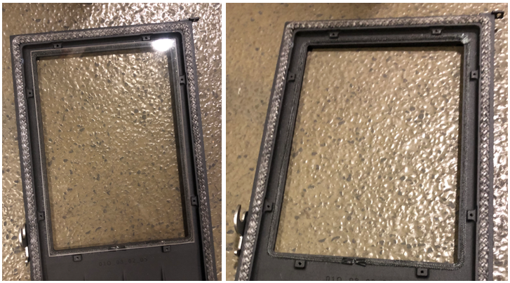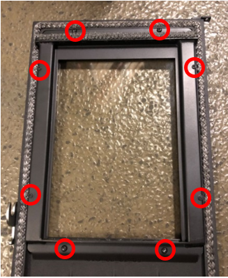Unscrew all the screws surrounding the glass window using the appropriate bits. Once all screws are removed, carefully lift off the frame: