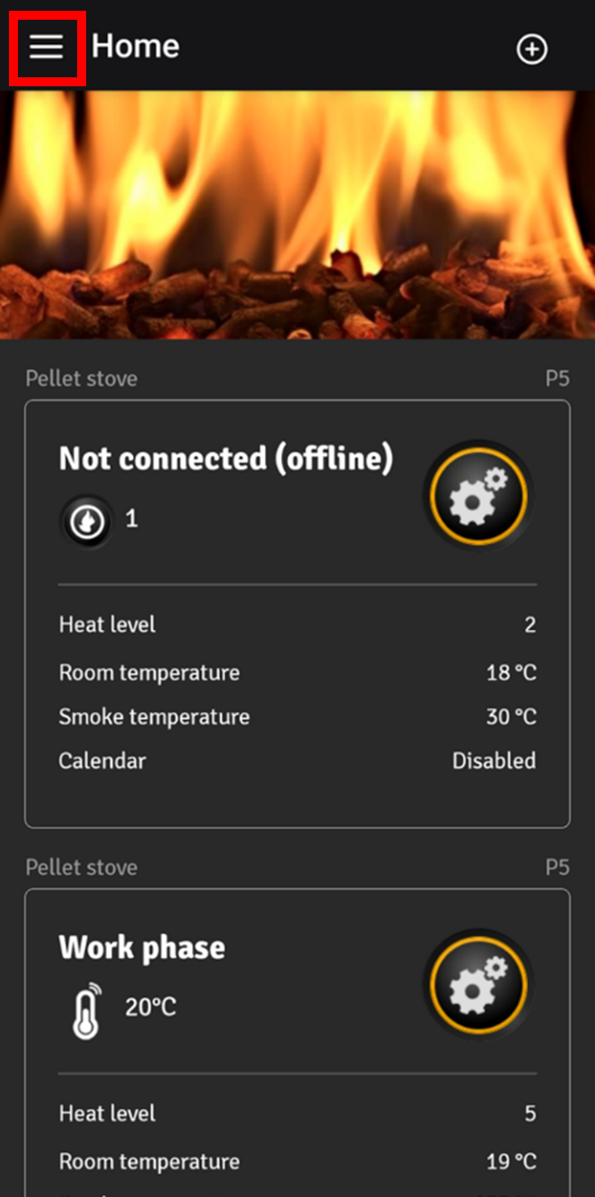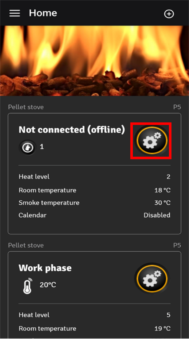 1. Open the app and access the stove you want to delete by tapping the “gear icon” next to it.