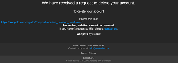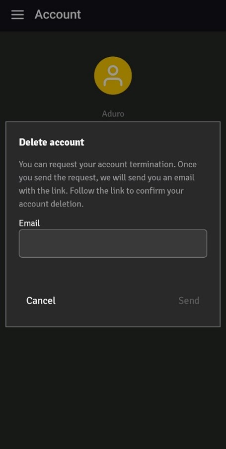 4. Enter your email address and tap the “Send” button. Within a few minutes, you will receive a confirmation email with a link, that lets you delete your account.