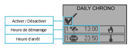 Veuillez utiliser ce paramètre pour créer un programme quotidien qui active et désactive le poêle aux mêmes heures chaque jour.